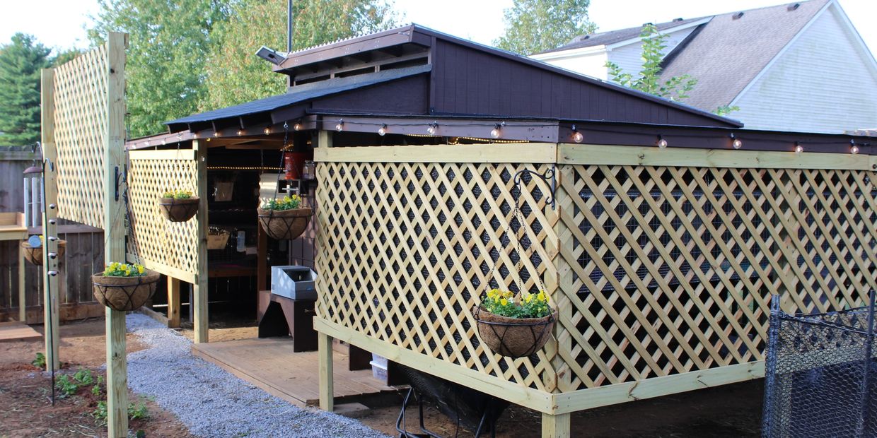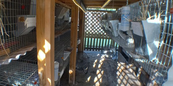 We have been active homesteaders for years. Laurel was raised on an exotic animal ranch and show dog kennel, and has experience with raising domestic companion animals, livestock, ratites, exotic cats, camelids, fowl, and rabbits. She spent several years showing Cavalier King Charles Spaniels in AKC confirmation, and worked as a professional dog groomer and salon manager during that time as well. Tim is a native Tennessean who was raised a country boy in an extended family of farmers. For over 30 years he was a licensed contractor, building numerous homes in and around the Rutherford County area. Now he spends his days dabbling in constructing animal facilities and accessories, and is an absolute wizard at problem-solving (an invaluable skill when it comes to animal husbandry). He referrers to himself as the "Willoughby Roadie" and can usually be found either in the barns, or in his shop creating some solution to a newly discovered challenge in keeping our livestock as happy and content as possible. We are avid gardeners and canners, and practice organic, chemical-free, sustainable stewardship as much as is possible in a suburban setting at this time. Laurel has raised New Zealand, Florida White, and Silver Fox rabbits over the years. Pictured above is our current rabbitry, affectionately known as "The Burrow".